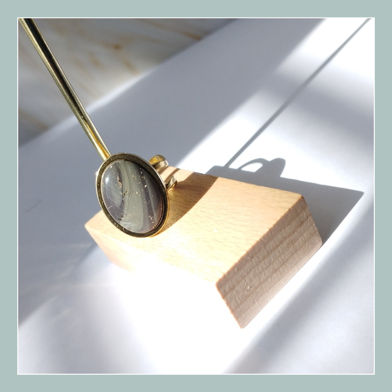 Bague en argile polymère et acier inoxydable hypoallergénique (garanti sans plomb, sans nickel, sans cadmium).