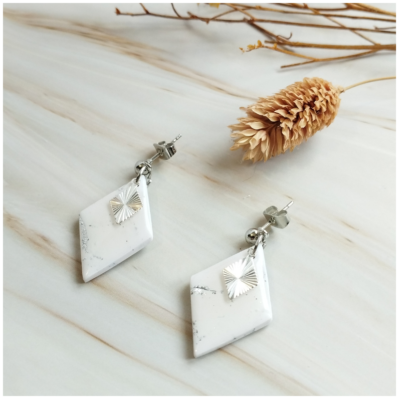 REV14 - Boucles d'oreilles Réveillon - "Losange" blanc/argentéREV14 – Boucles d’oreilles Réveillon – « Losange » blanc/argenté